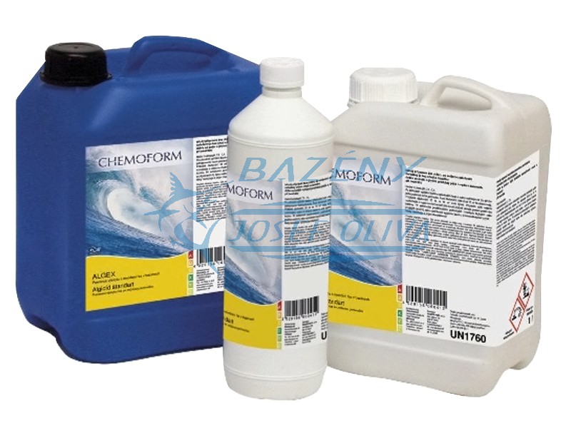 Algex – Algicid Standard 3l slouží jako preventivní přípravek proti řasám, ale také k odstranění přemnožených řas a bakterií v bazénech. Jedná se o tekutý přípravek bez chloru se sníženou pěnivostí, pH neutrální, naředěný je bez chuti a zápachu, dobře se snáší s jinými produkty péče o vodu v bazénech.
