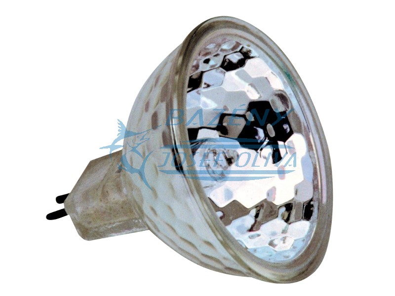 Náhradní halogenová lampa 50 W / 12 V pro podvodní světlomet VA 50W s hrncem a přírubou. Bazénová podvodní světla zvyšují požitek z nočního koupání, musí být nastavená tak, aby neoslňovala. Liší se tvarem, designem i materiálovým provedením. Mohou mít halogenové nebo diodové žárovky, které mohou být doplněny o barevné clonky. U LED barevných světel je možno použít dálkové ovládaní pro změnu barvy. Technické parametry halogenové lampy HRFG 50 W/12 V – s čelním sklem 50 mm • Napětí: 12 V • Výkon: 50 W