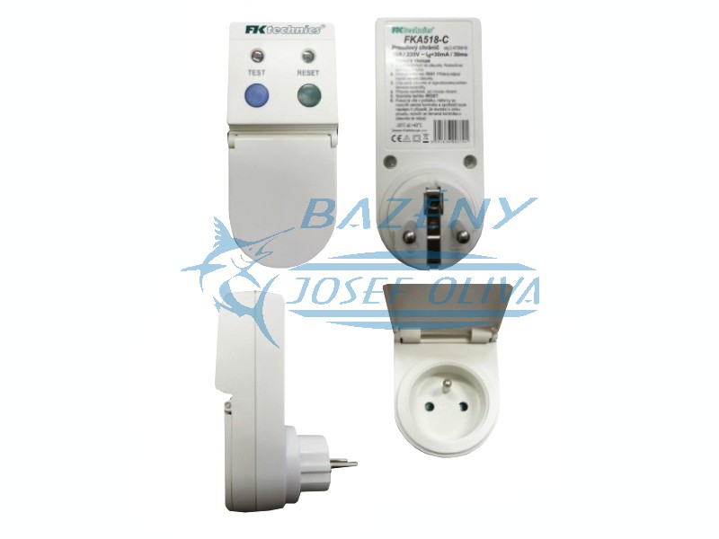 Proudový chránič 16 A (bezpečnostní zásuvka) 30 mA/30 ms. Použití najde zejména pro el. spotřebiče ve vlhkém prostředí. Proudový chránič sleduje rozdíl proudů ve fázovém a nulovém vodiči a v případě, že rozdíl obou proudů bude větší než 30 mA, je spotřebič během 0,03 sekundy odpojen od el. sítě 230 V, takže nemůže dojít k nebezpečným úrazům elektrickým proudem. Použití najde zejména pro el. spotřebiče ve vlhkém prostředí. Typickou oblastí, kde se využívá tento proudový chránič, jsou také filtrační jednotky u jezírka a zahradních bazénů (filtrační jednotka a osvětlení se připojí přes proudový chránič). ► Parametry proudový chránič FKA518 • Provozní napětí 230 V / 50 Hz • Maximální proud do spotřebiče: 16 A • Maximální příkon spotřebiče: 2 300 W • Chybový proud: 30 mA • Reakční doba 30 ms • 2-pólové odpojení ze sítě • Provozní teplota: -10 až +40 °C • Rozměry (d x š x v): 105 x 55 x 80 mm